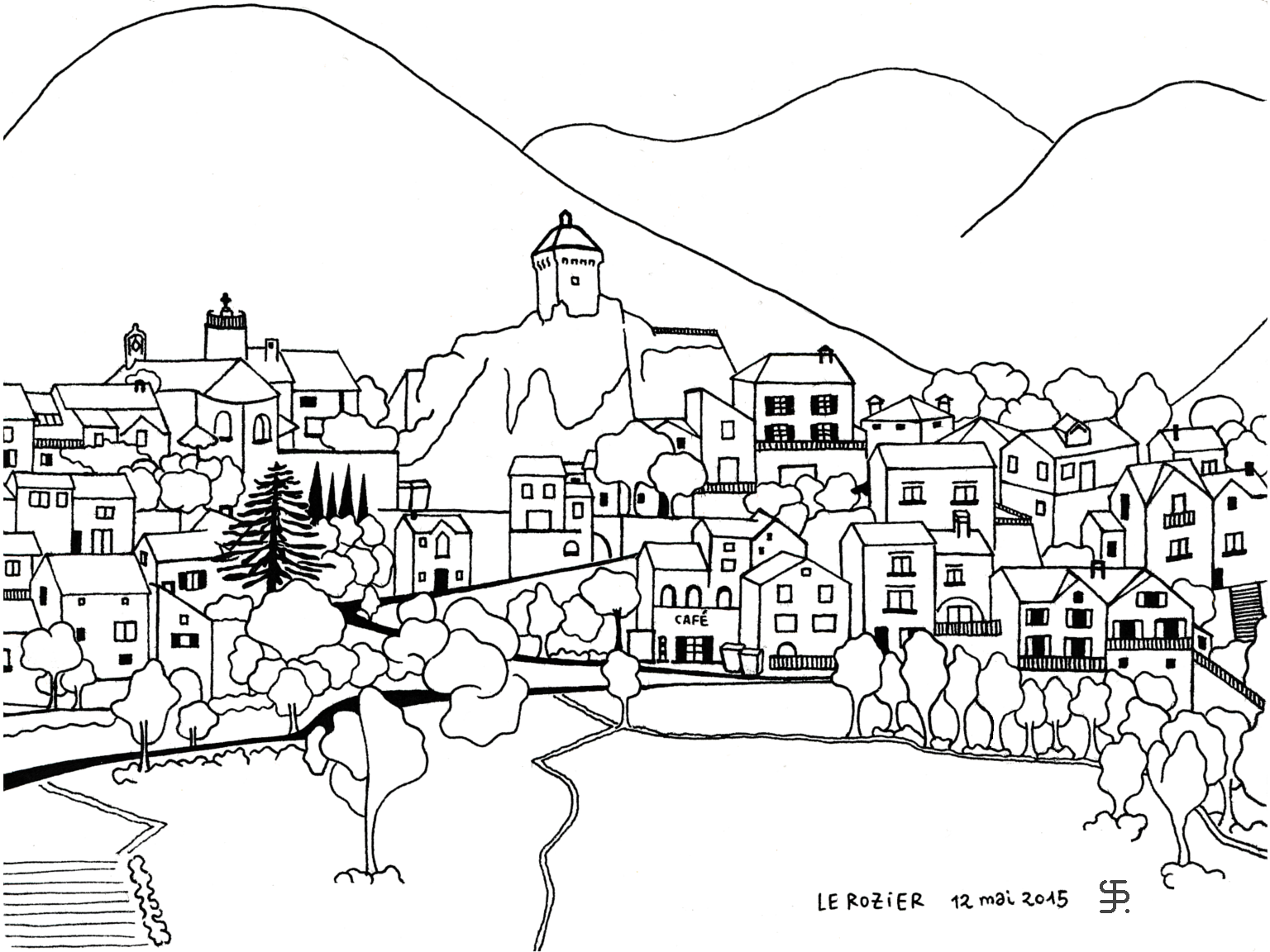 Dans un soleil écrasant, on a trouvé en hauteur au bord d’une route un grand arbre pour s’abriter, dans un vent tiède en attendant un départ de randonnée tardive. Devant cette vue sur le Rozier, il fallait bien que j’immortalise cet instant veillé par des vautours !